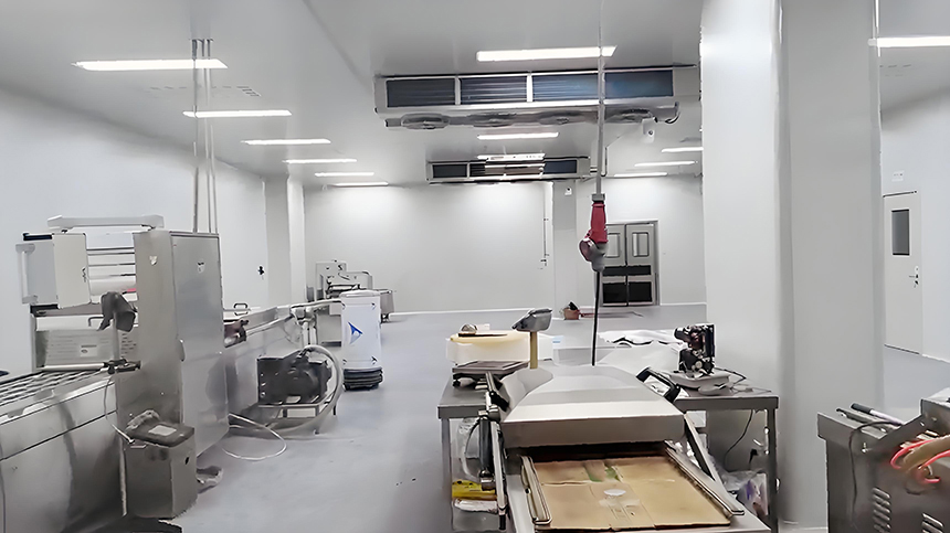 本項目位于黑龍江大慶市某食品有限公司,該公司以醬鹵肉制品、火腿、肉腸等餐飲食材為主導產品,集研發、生產、銷售于一體的綜合熟食品生產加工企業。公司支持醬鹵肉制品代工,餐飲熟食代工,肉制品OEM貼牌,湯料代加工,肉醬底湯代加工,餐飲標準化菜品定制,標準化配餐用肉食,半成品熟食,半成品菜品。該工程潔凈度要求30萬級~10萬級無菌凈化標準,凈化面積6800平方米。